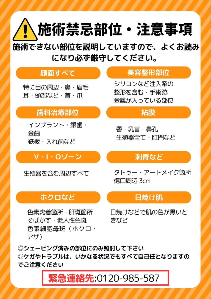 ただし目元・眉・首など一部照射禁止部位にはご注意ください。
